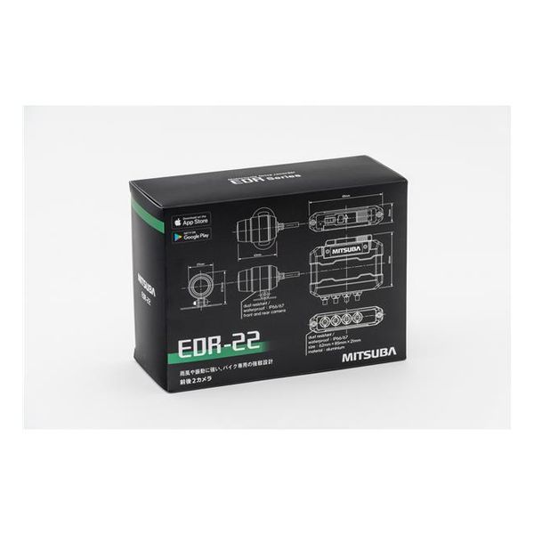 【新品】MITSUBA ミツバサンコーワ バイク専用ドライブレコーダーEDR2ndシリーズ 前後2カメラ搭載スタンダードモデル EDR-22 黒