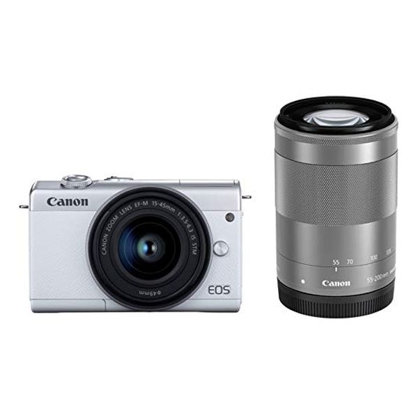 【新品】Canon ミラーレス一眼カメラ EOS M200 ダブルズームキット ホワイト EOSM200WH-WZK