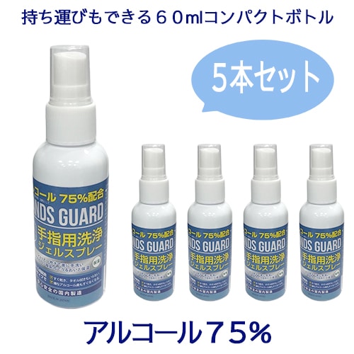 【5本セット】アルコール洗浄剤 ハンズガード ジェルスプレー 60ml アルコール75%配合の高濃度ジェルタイプ洗浄剤